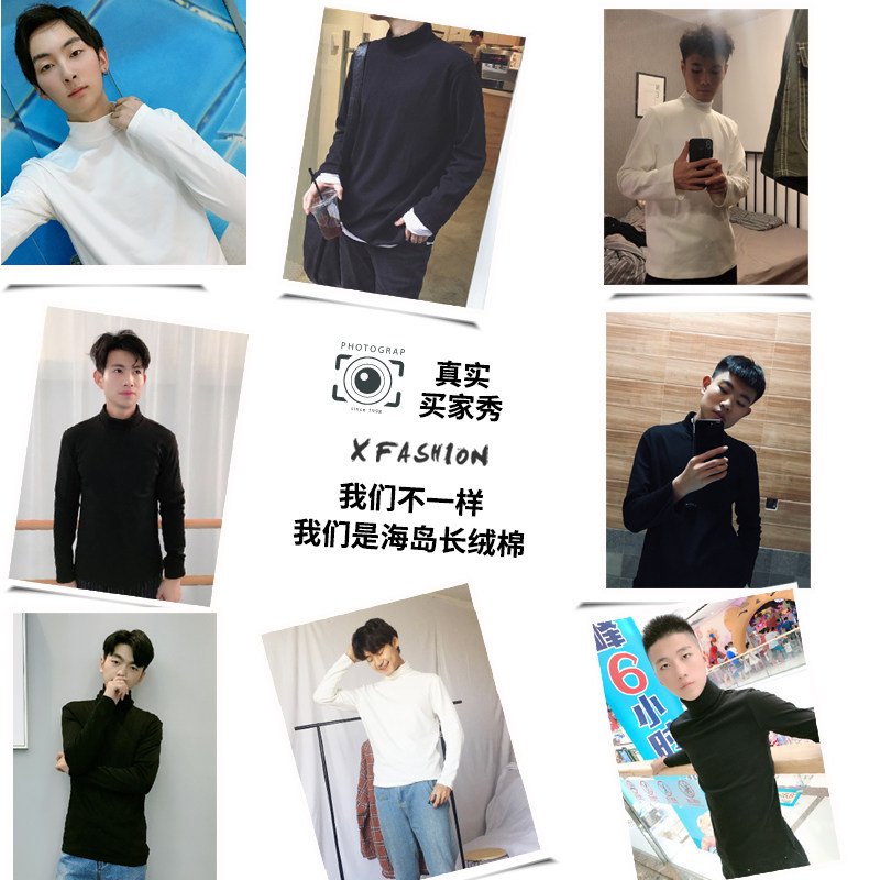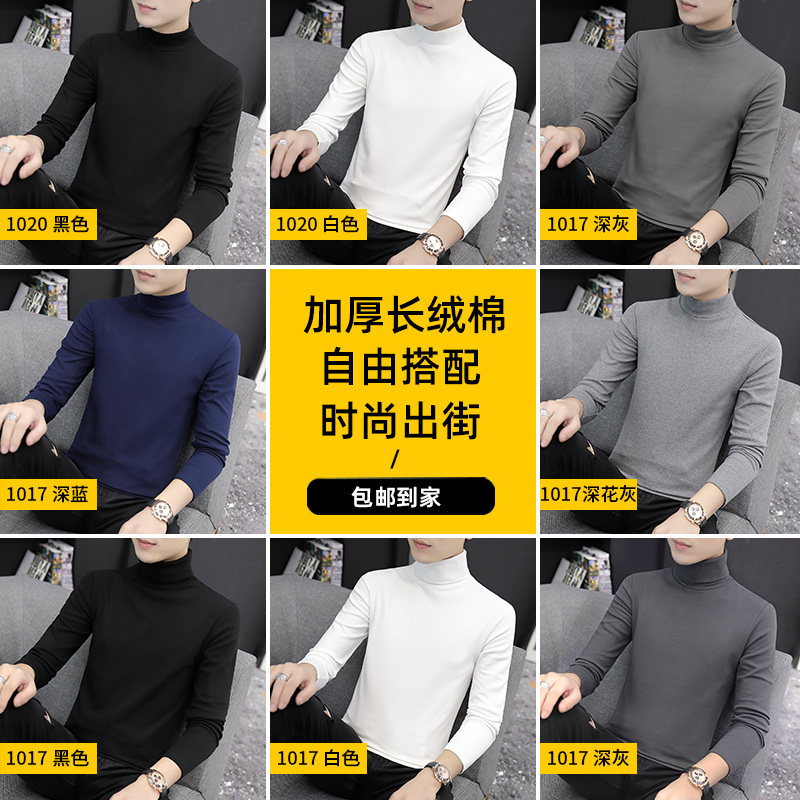 Thickened long suede cotton long sleeve T-shirt men's half height collar bottom-shirt autumn winter pure color warm autumn clothes with velvety.