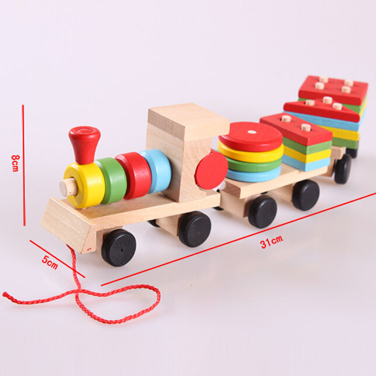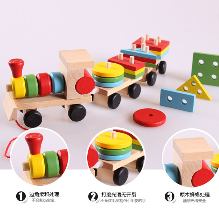 Wooden three - section train disassembly combined shape block tractor nut children's puzzle toy 1 - 3 - 6 years old