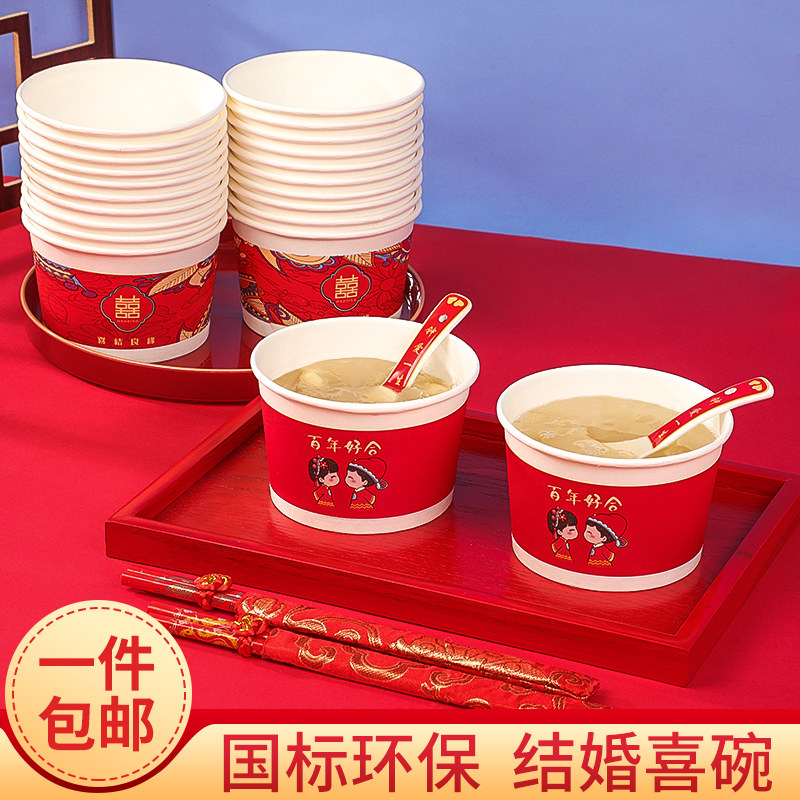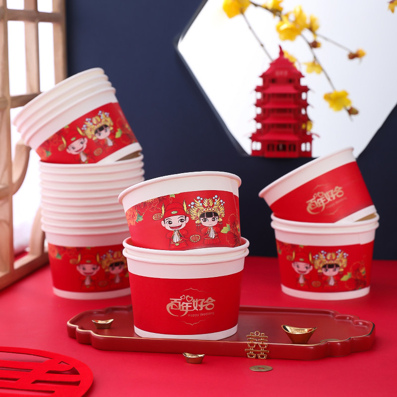 Wedding supplies thick paper bowl disposable festive paper cup red bowl wedding banquet Red Bowl set
