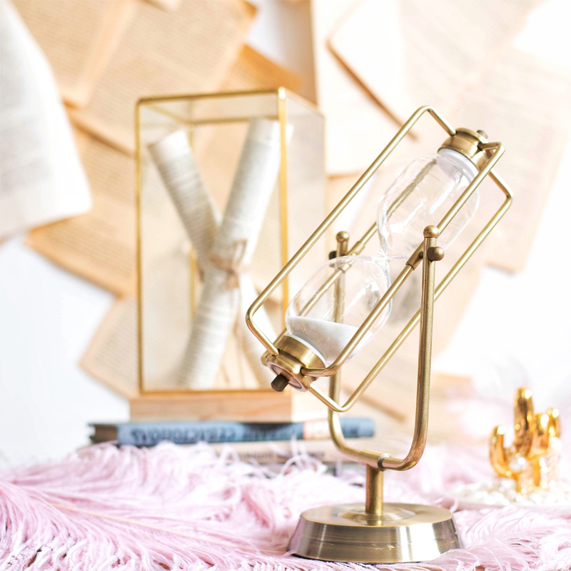New rotating hourglass (15mins) new rotating hourglass (30mins) round copper rotating hourglass small copper three column hourglass small bronze three column hourglass silver tricolumn hourglass