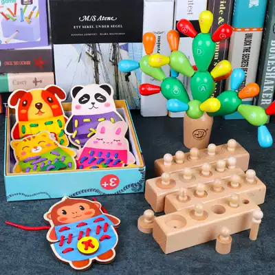 Fine action-Animal rope-wearing set Home version cylindrical socket (do not wash)Animal rope-wearing set Cylindrical socket Rope-wearing set Cylindrical cactus building block rope-wearing set Barrel digital mother