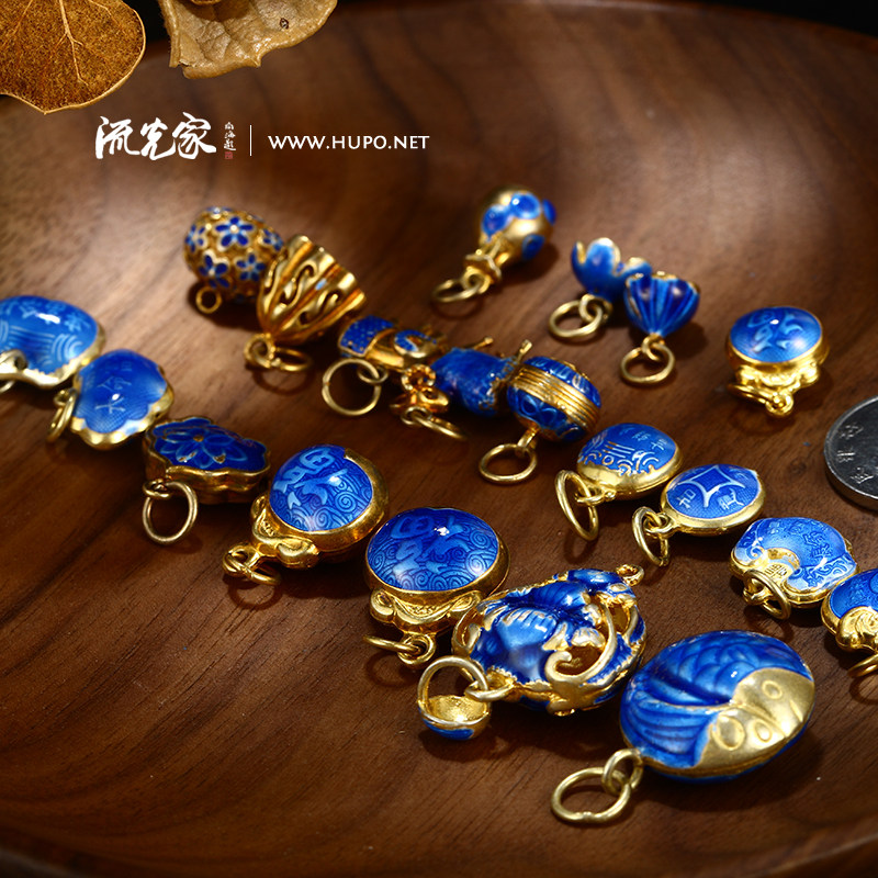 Streaming Light Home Silver Gilded Old Beijing Flower Silk Dot Blue Pendant eighteen Subhand Strings Buddha Pearl Accessories