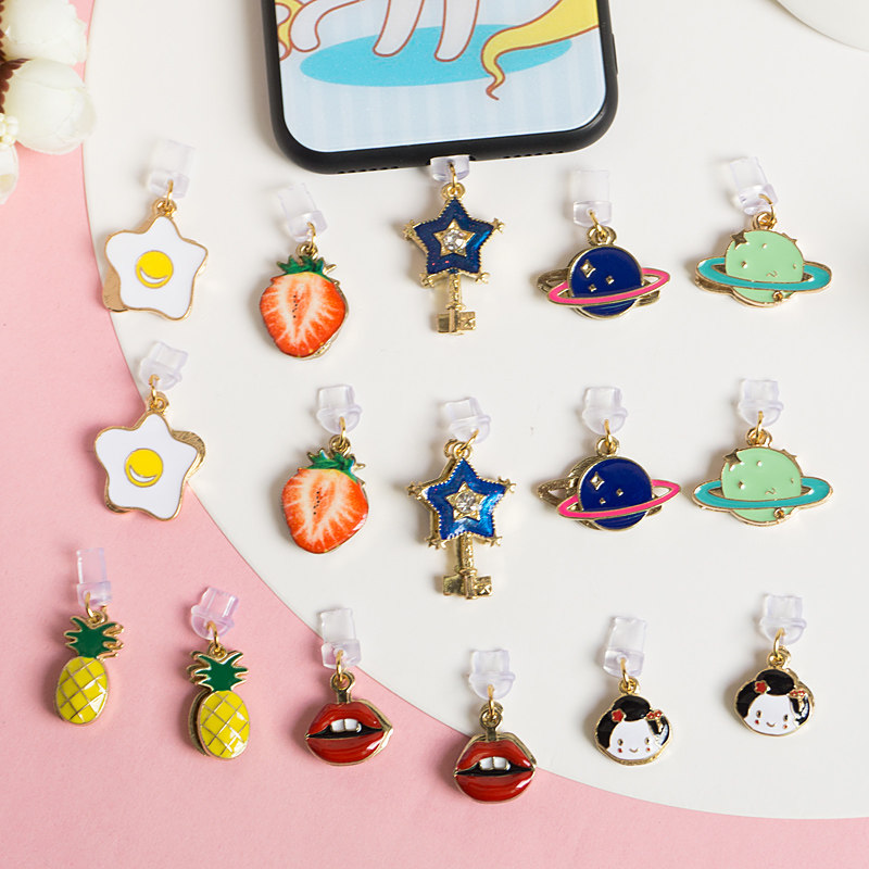 Star key-iPhone data plug blue planet-iPhone data plug light green planet-iPhone data plug large strawberry-iPhone data plug fried egg-i