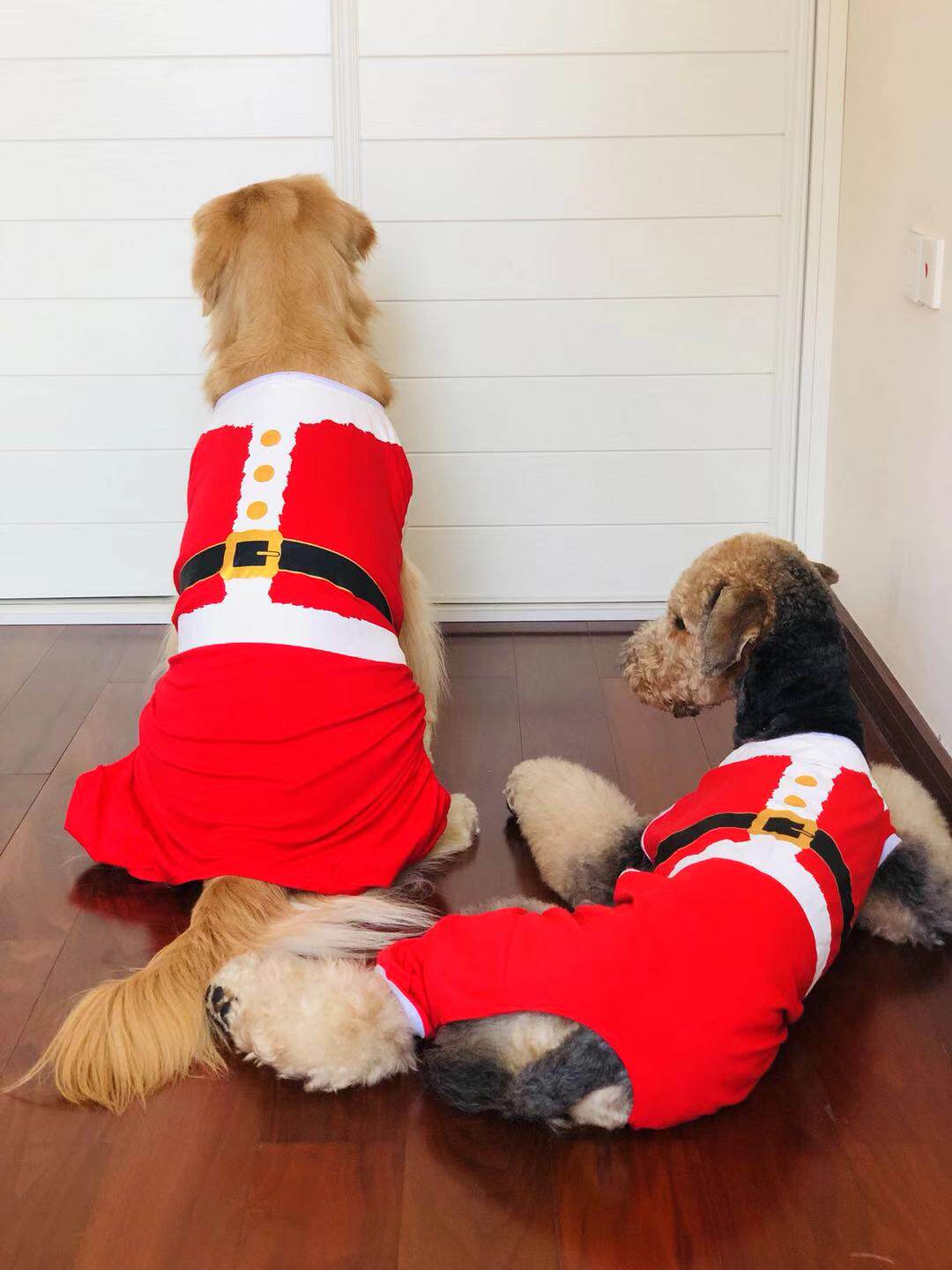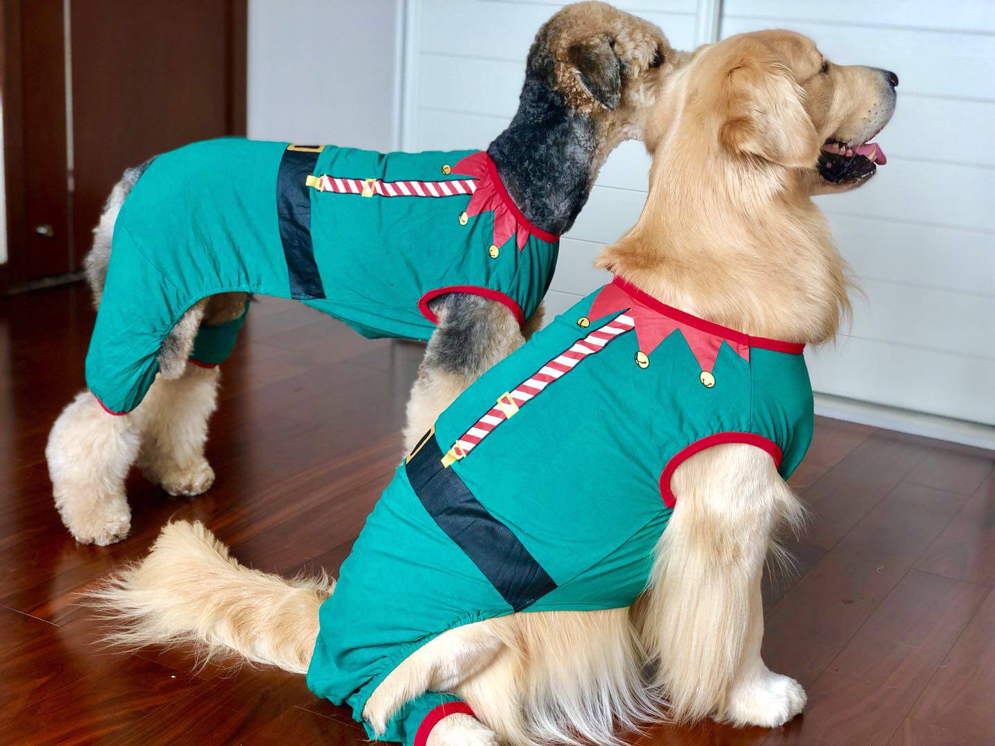 (Christmas Pet) Samoyed Doberman Golden Retriever Big Dog Clothes Sleeveless Green Jumpsuit Four-legged Pajama Pants Cotton