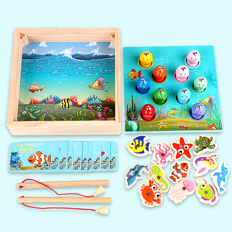 Children's wood magnetic fishing pool suit Toys 1-2-3-5-year-old baby Early teaching Puzzle Parenting Interactive Toys