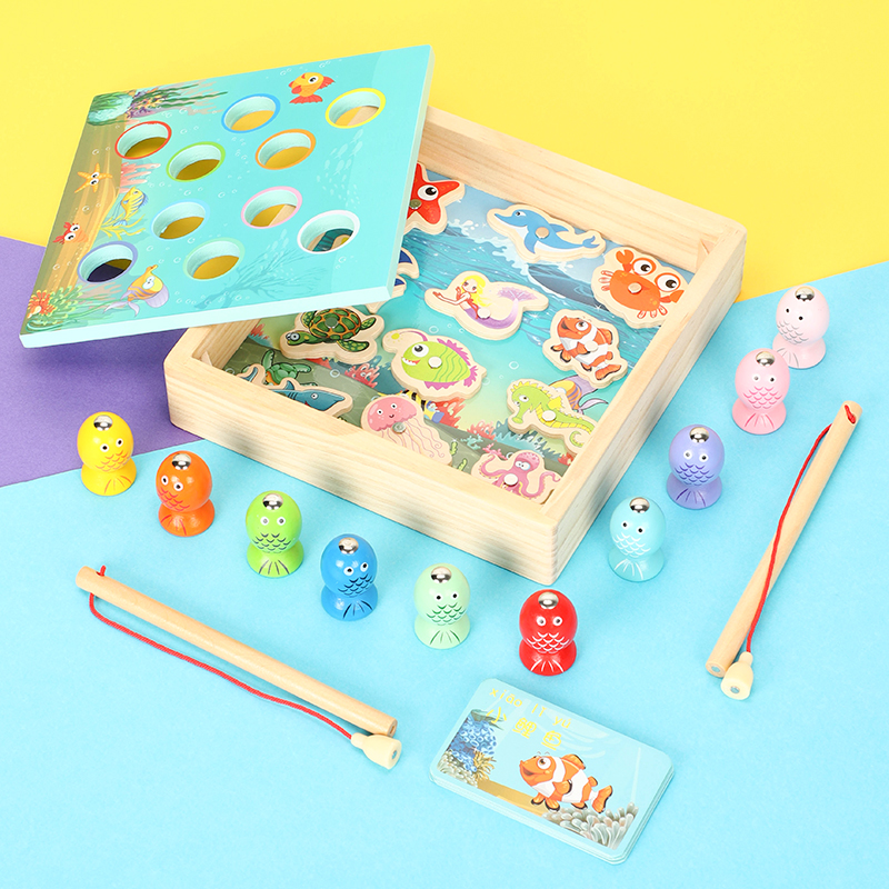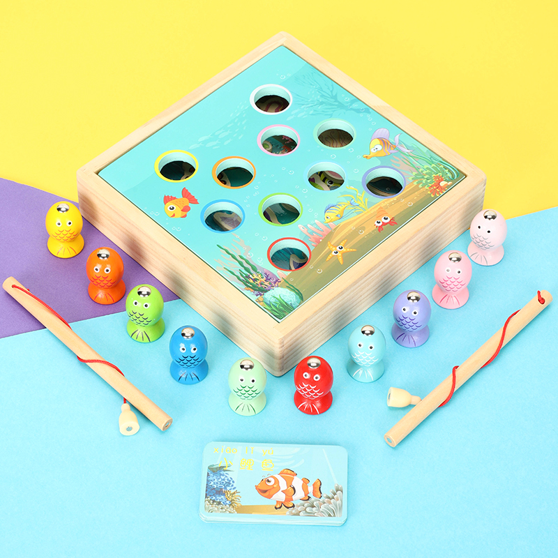 Wooden 3D Cubism Parenting Magnetic Fishing Games Building Blocks Toys Children 1-2-3-year-old male girls early education