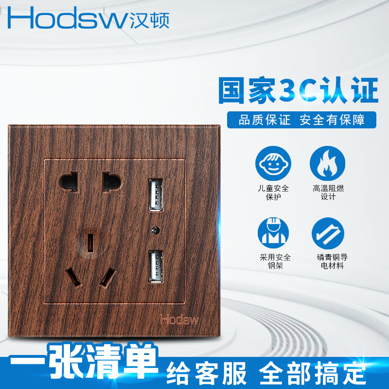 Hanton Retro Wood Switch Socket 86 type 5 5 5 - hole socket panel porous USB wall power supply single household