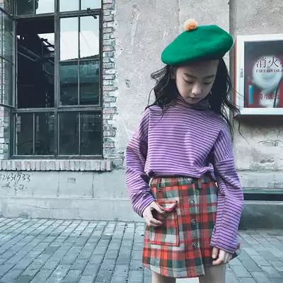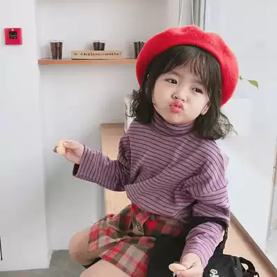 Cold aunt custom autumn and winter New bottomed striped high neck shirt men and women children long sleeve loose inner top parent-child