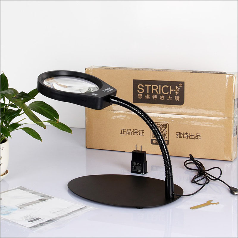 Desktop Magnifier Touch Adjustment Brightness 10 Times Optical Glass Lens Read Repair Detection