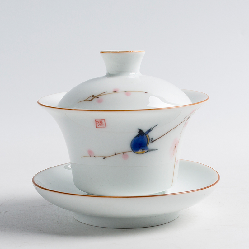 Gaiwan hand-painted Jingdezhen traditional painted blue and white porcelain three-cai cup handmade Kung Fu tea with large tea bowl