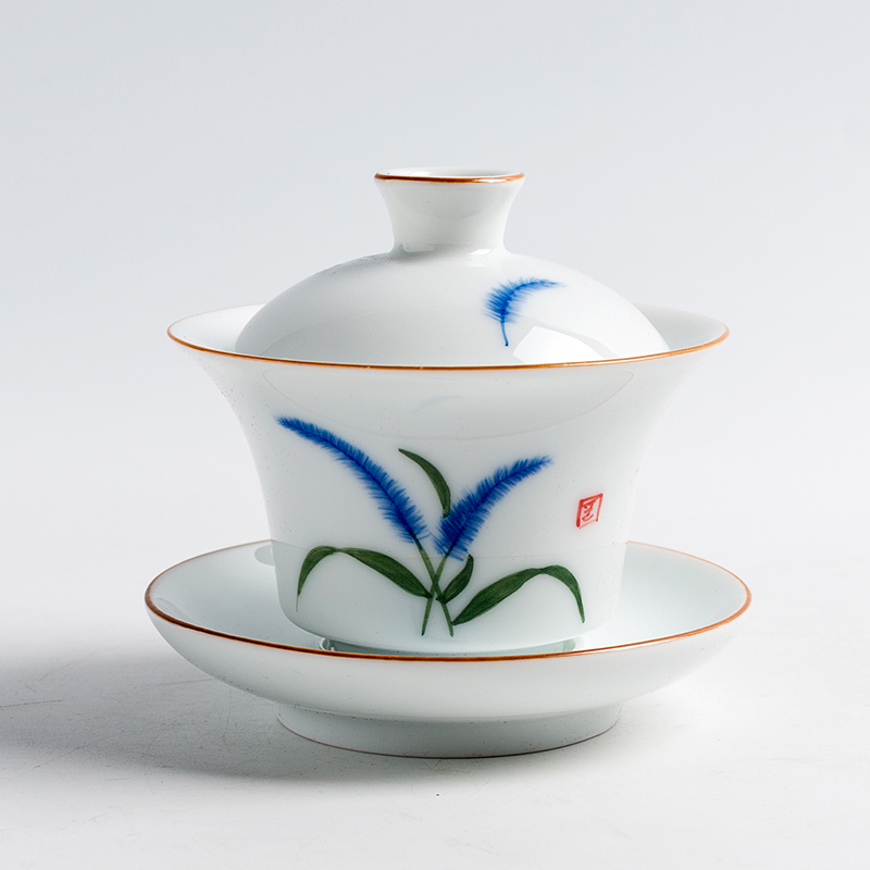 Hand-painted Gaiwan-Fish Play Hand-painted Gaiwan-Reed Hand-painted Gaiwan-Magpie hand-painted Gaiwan-Sunset