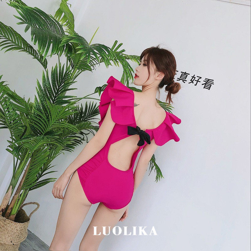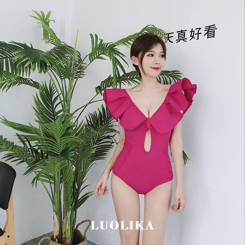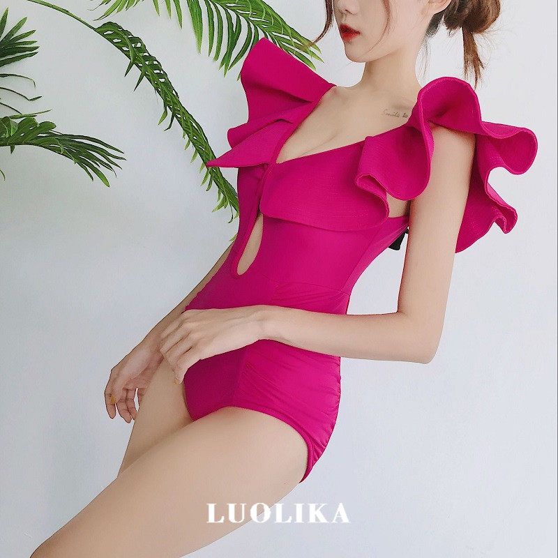 Swimsuit female rose red new super fairy sexy one-piece net red thin cover belly gather small chest together rose red hot spring swimsuit