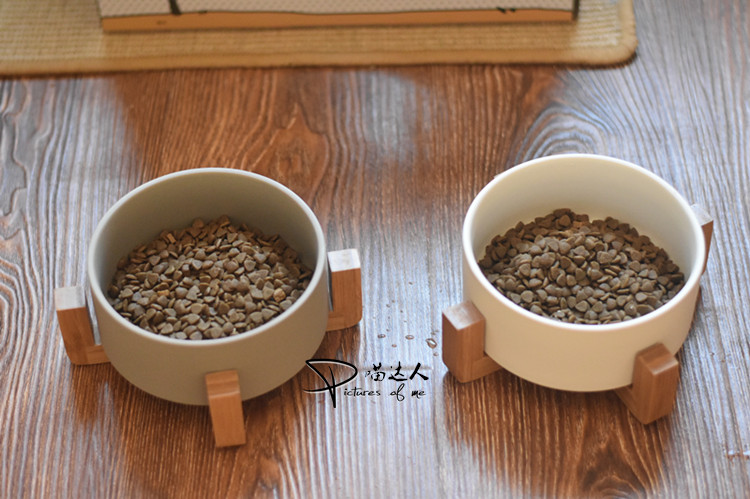 Large diameter ceramic cat bowl cat ceramic bowl dog ceramic bowl dog bowl cat basin cat dining table solid wood bowl rack