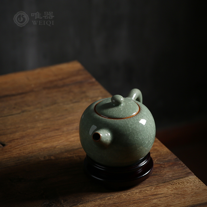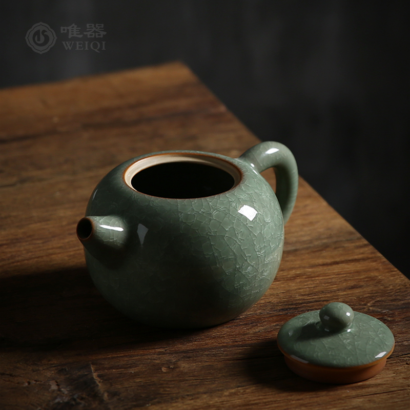 Celadon ceramic master Chen Shixuangen pure handmade ice crack rich teapot large teapot home decoration