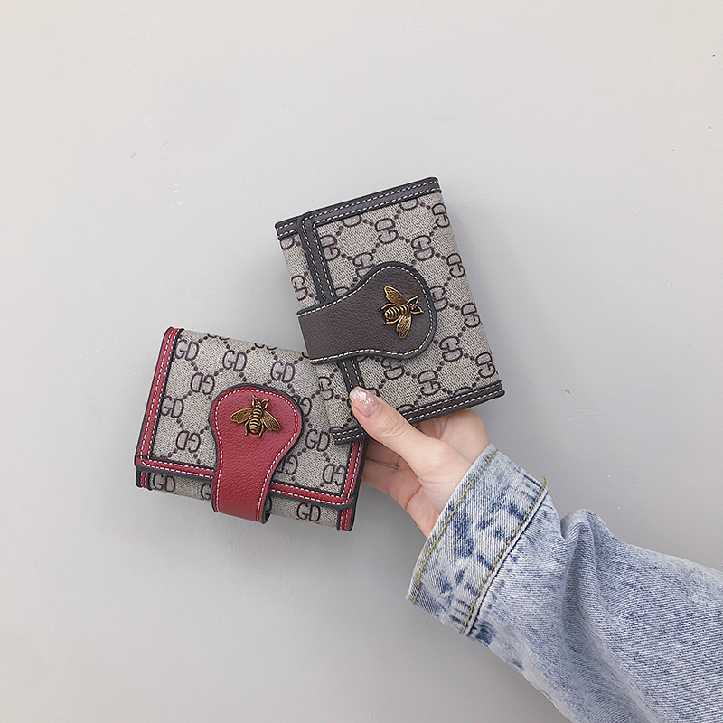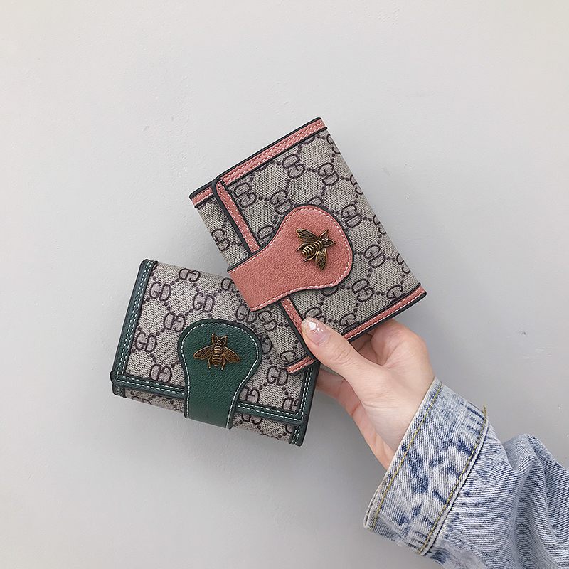 2021 new women's wallet women's short ins tide multi-card position three folding contrast buckle clutch small wallet