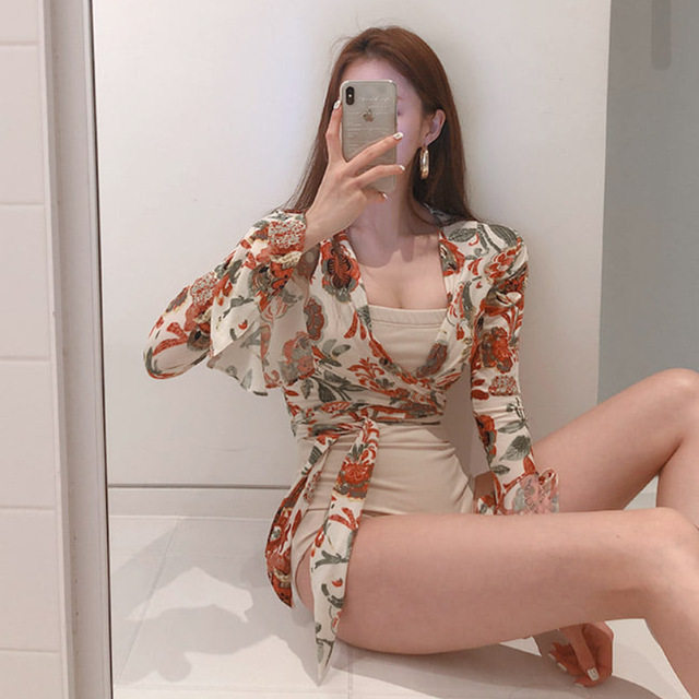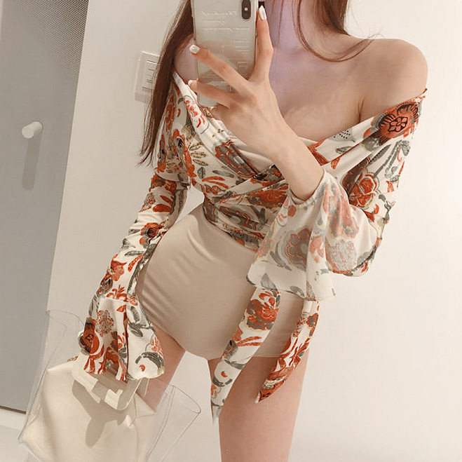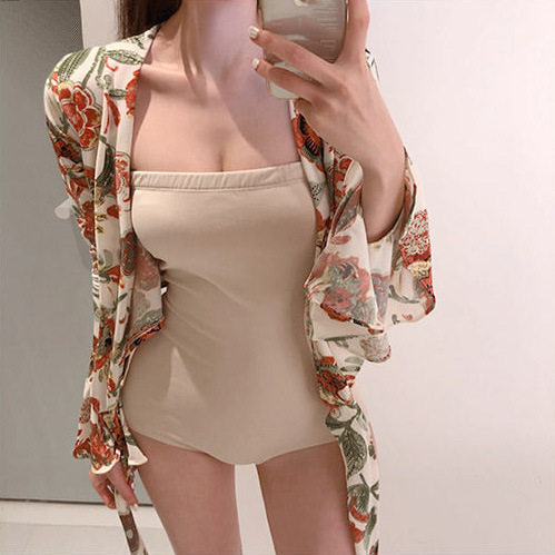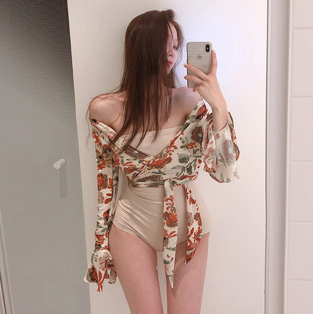 Even body swimsuit women's 2021 new cover slim conservative students small frescoed plethora of spa spa bikini