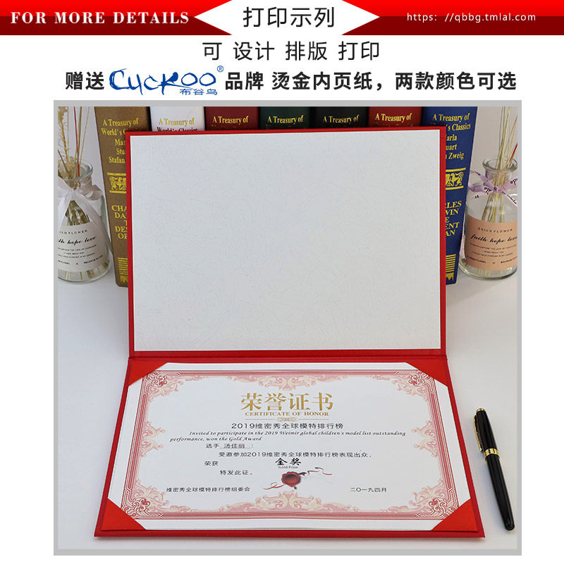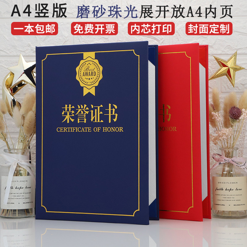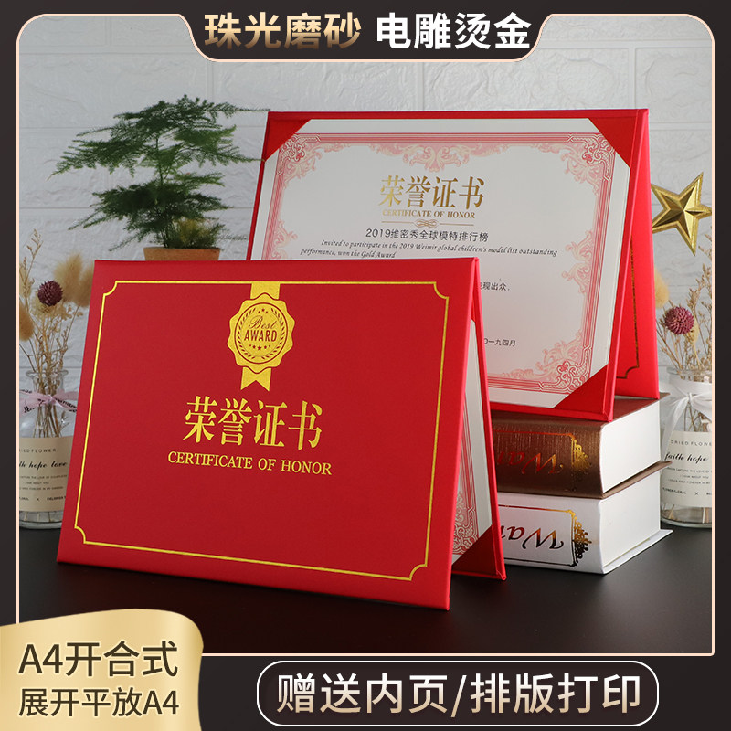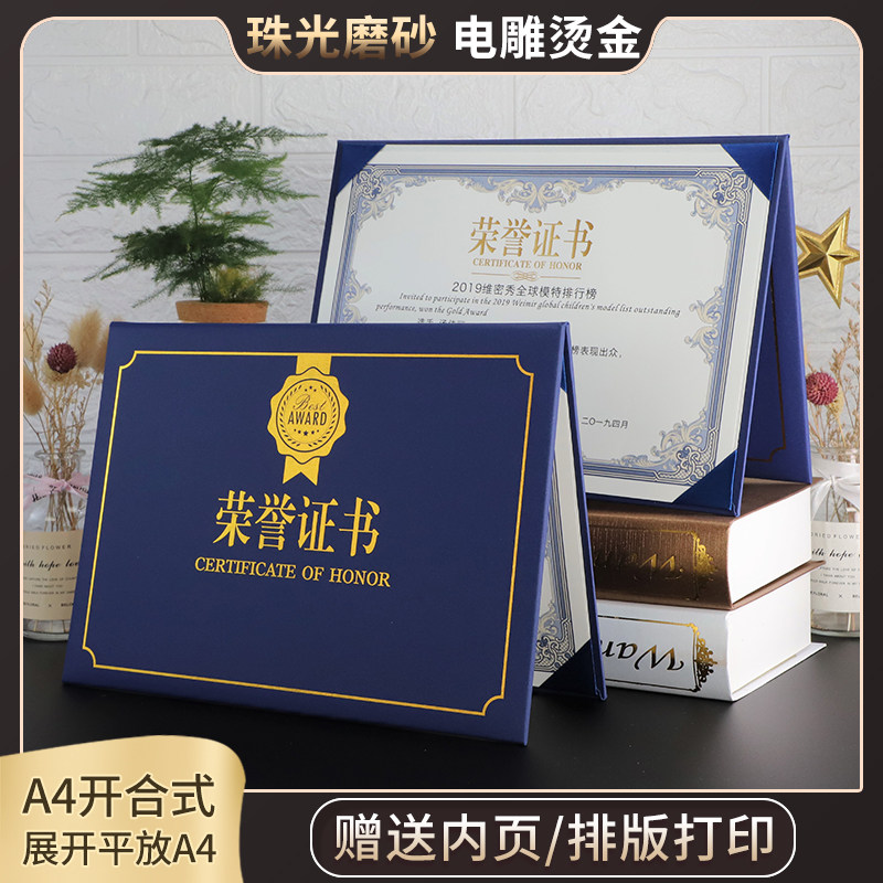 A4 horizontal honor certificate pearlescent matte cover letter of appointment shell award certificate custom-made bronzing printing production staff certificate modern European creativity award-winning vertical style