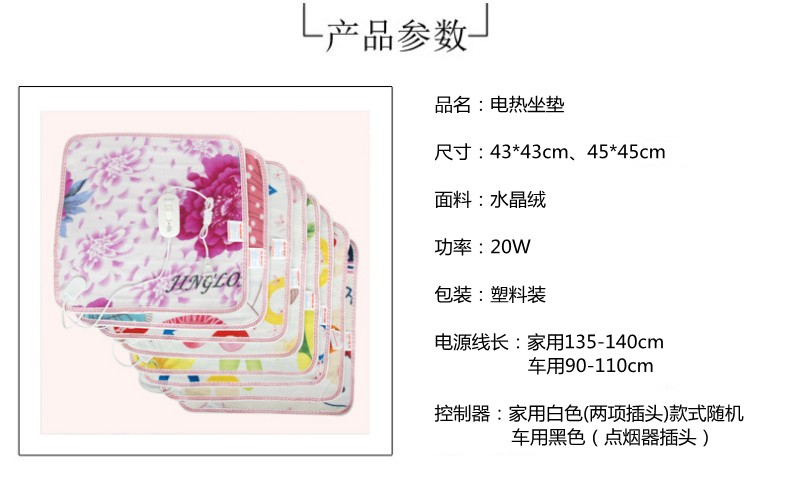 Single-sided picture 43*43cm high and low grade random pattern Double-sided picture 45*45cm high and low grade random pattern 12v car electric heating cushion 45*45 random pattern