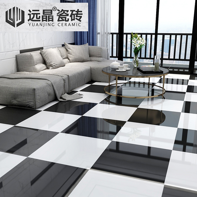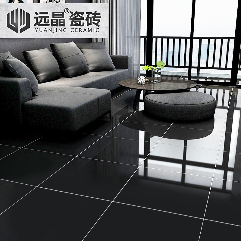 Yuanjing 800x800 living room bright floor tile pure black vitrified brick Engineering polished brick Full cast glaze solid color tile