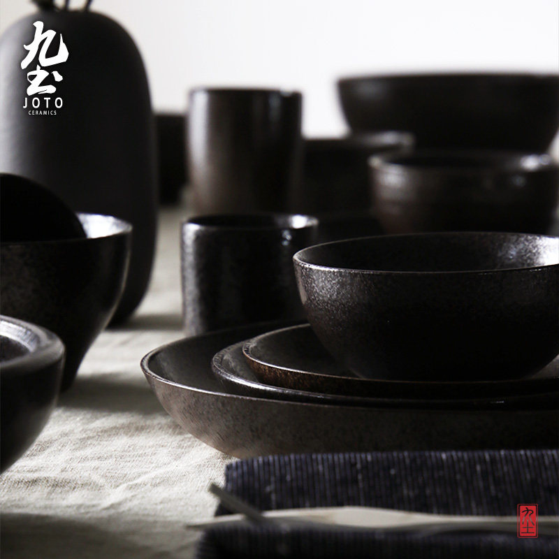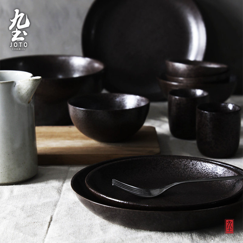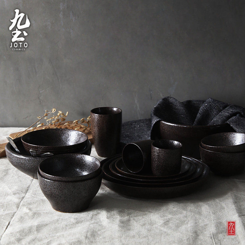 Day Style Ceramic Cutlery handmade soup Bowl Tray Cups Day Stock Retro Minimalist home Two food utensils Home Suits-Taobao