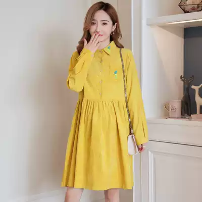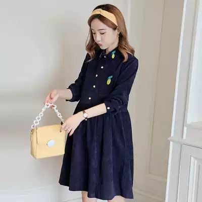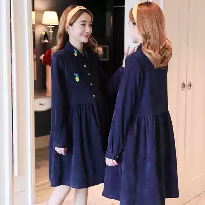 Pregnant women autumn top medium long skirt 2021 new long sleeve base skirt fashion Korean corduroy dress