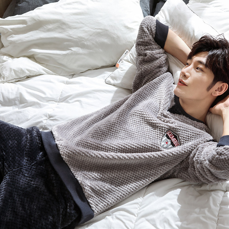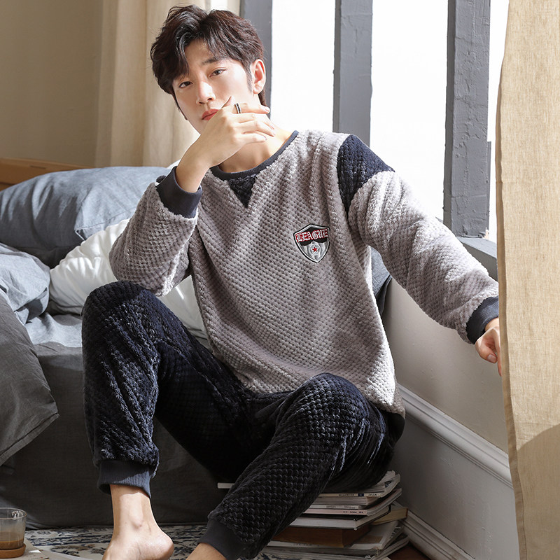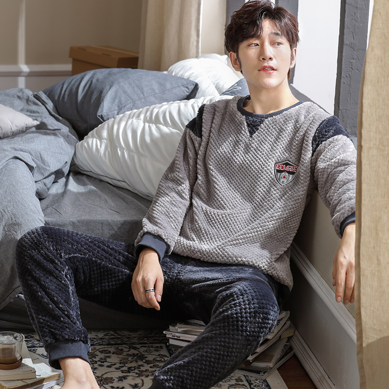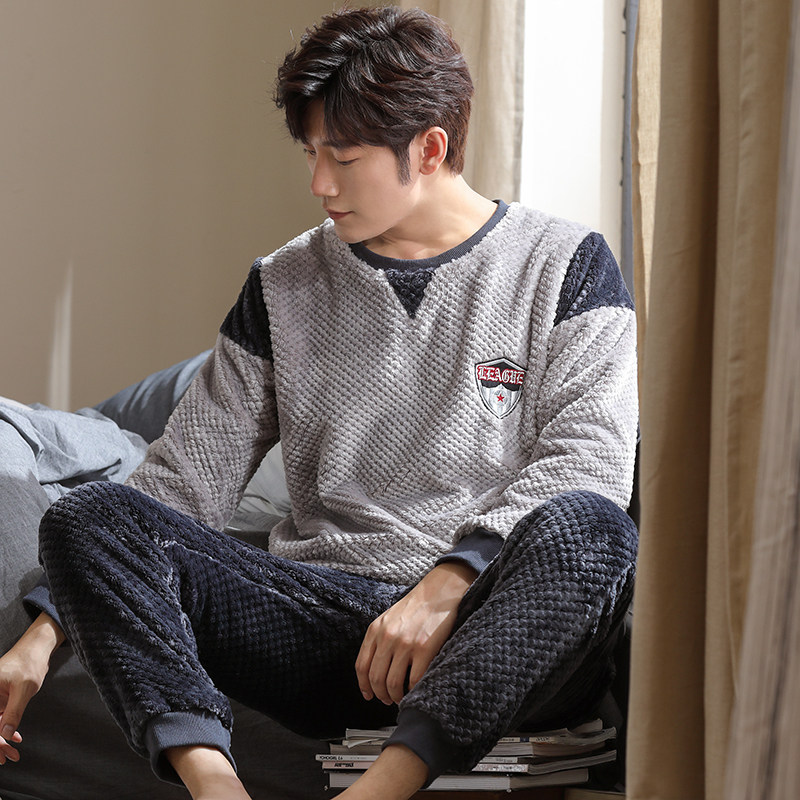 Autumn Winter models Men's pyjamas Coral Suede Thickened gushed Warm Flannel winter men's large size Home Residence Suit Suit