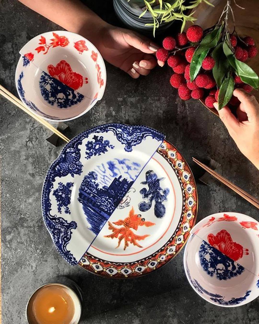 Italian Seletti Chinese Western HYBRID Splicing Series Fruit Bowl Dessert Bowls Small Rice Bowls Bone China Porcelain