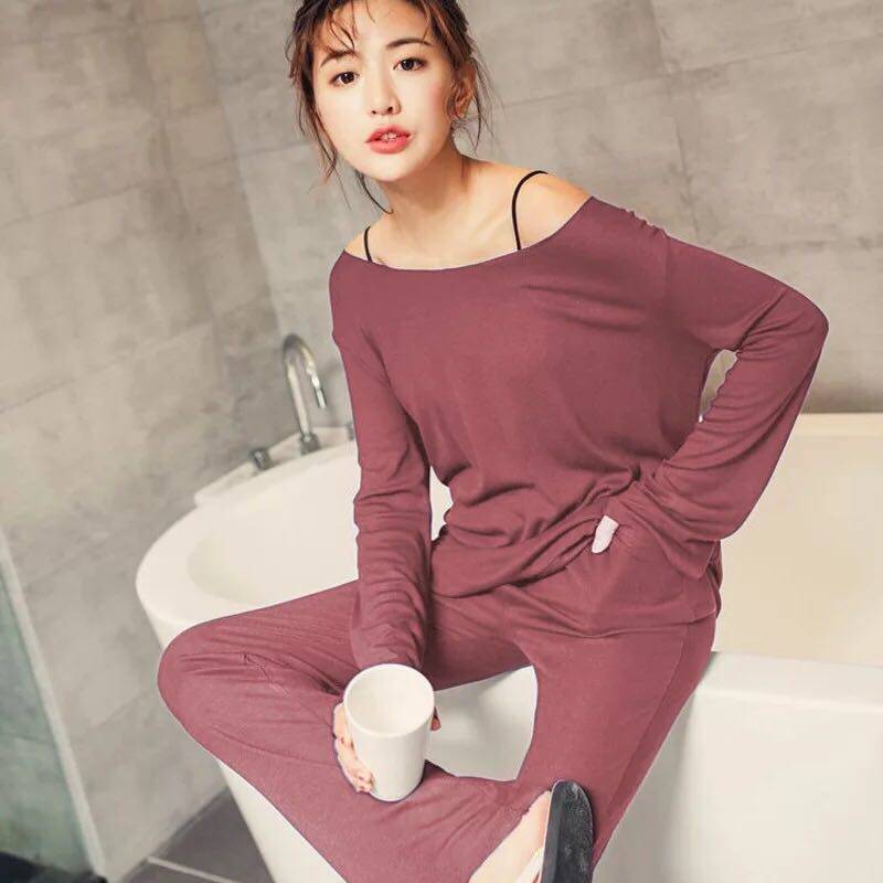 Spring and autumn modal cotton pajamas for women can be worn outside summer homewear suits with chest pads long-sleeved two-piece thin section