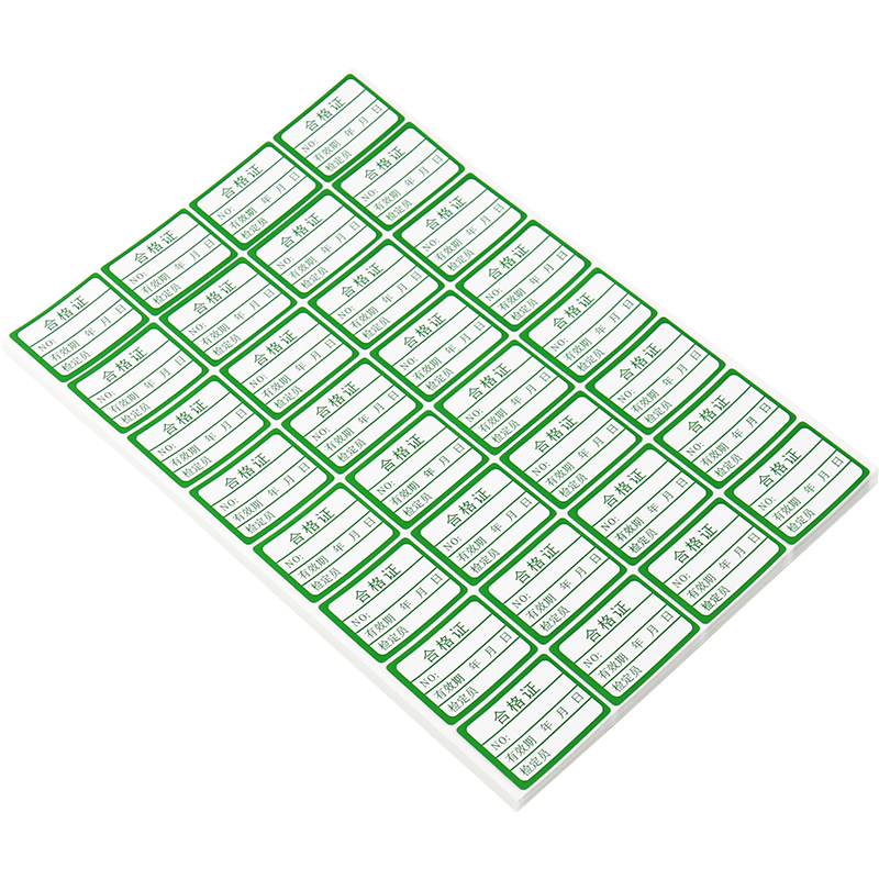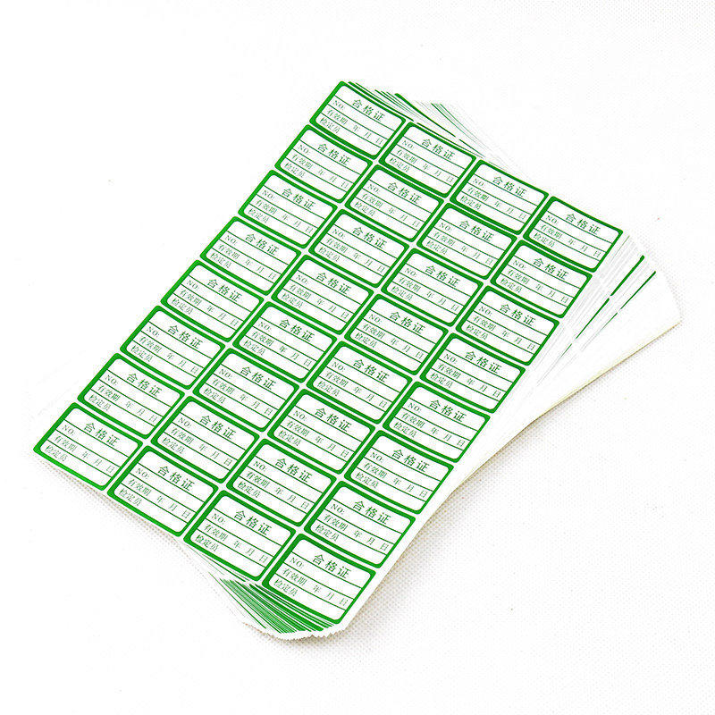 Jinji Adhesive Green White Qualification Certificate Red Adverse Material Label Backglue Label Backs Support Custom