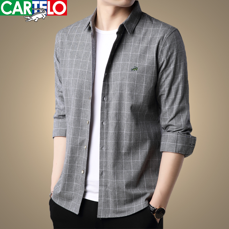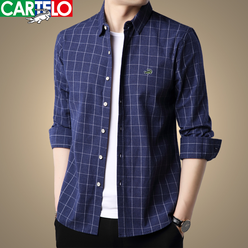 Kadile Crocodile Grid Shirt Men Pure Cotton Autumn Cotton Cotton Sweater Fashion Long Sleeve Shirt Men Wear Sweater