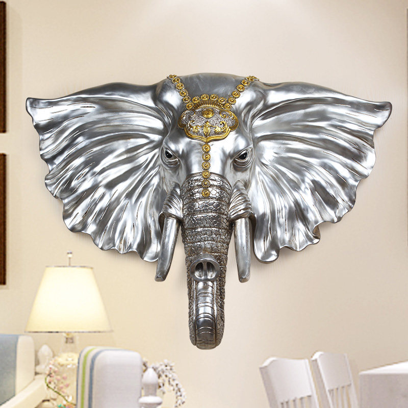 European home lucky elephant head wall hanging bar living room KTV entrance background pendant Wall animal decorations