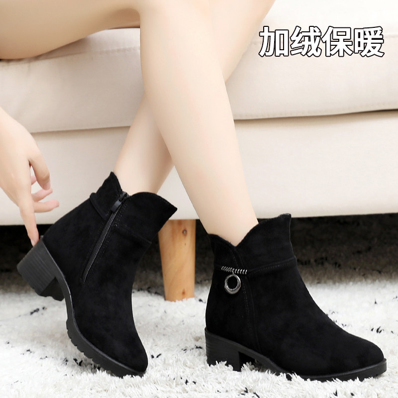 Old Beijing cloth shoes women's boots winter warm and thick cotton shoes high-heeled work fashion boots soft-soled short boots women's fleece