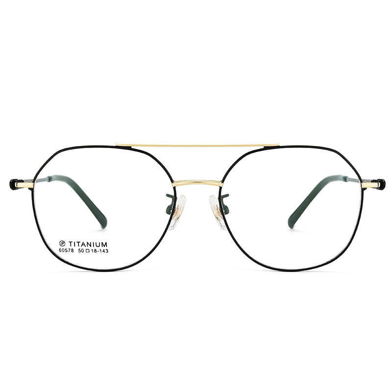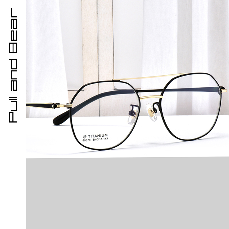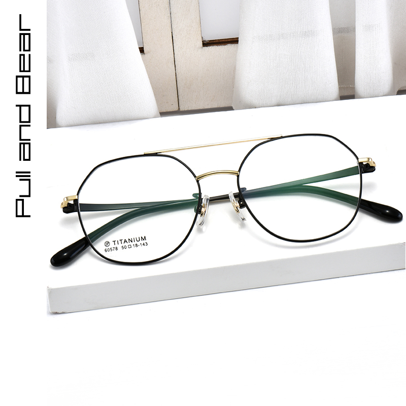 Retro double beam glasses frame men's pure titanium myopia glasses women have degrees finished color-changing anti-blue light flat mirror thin