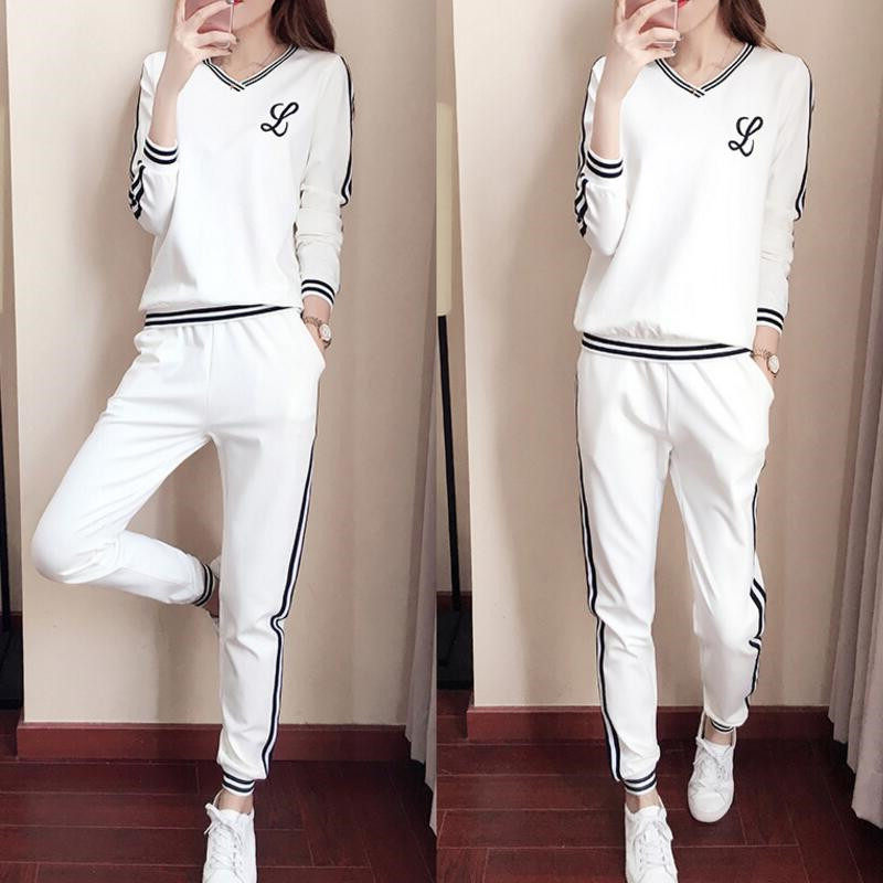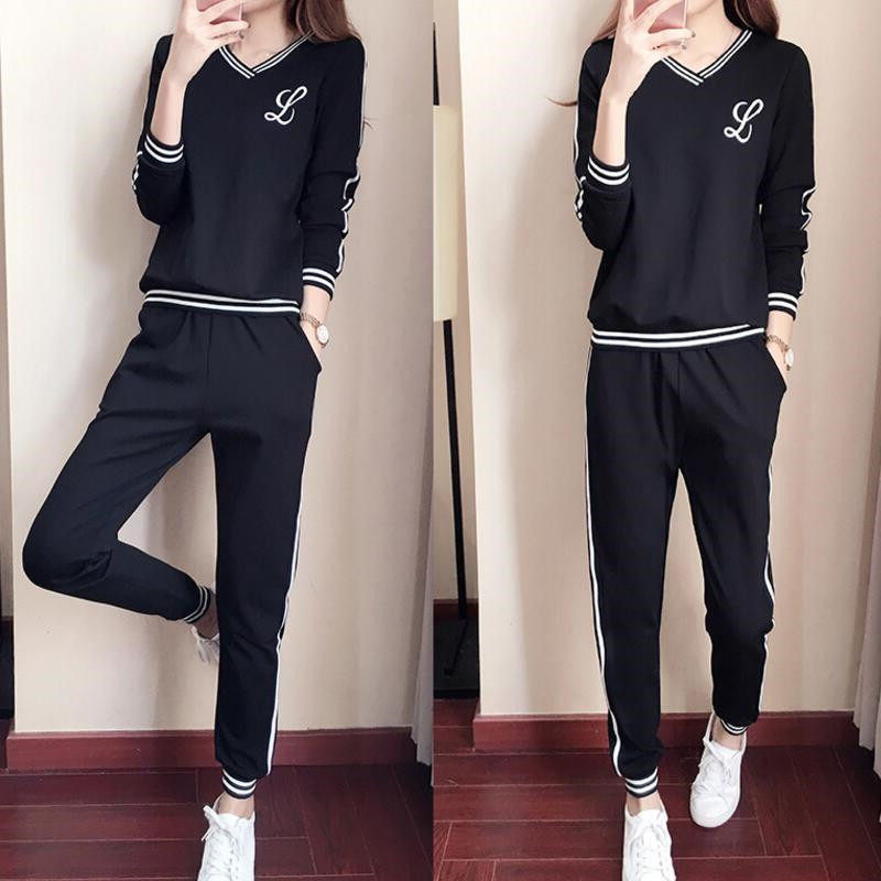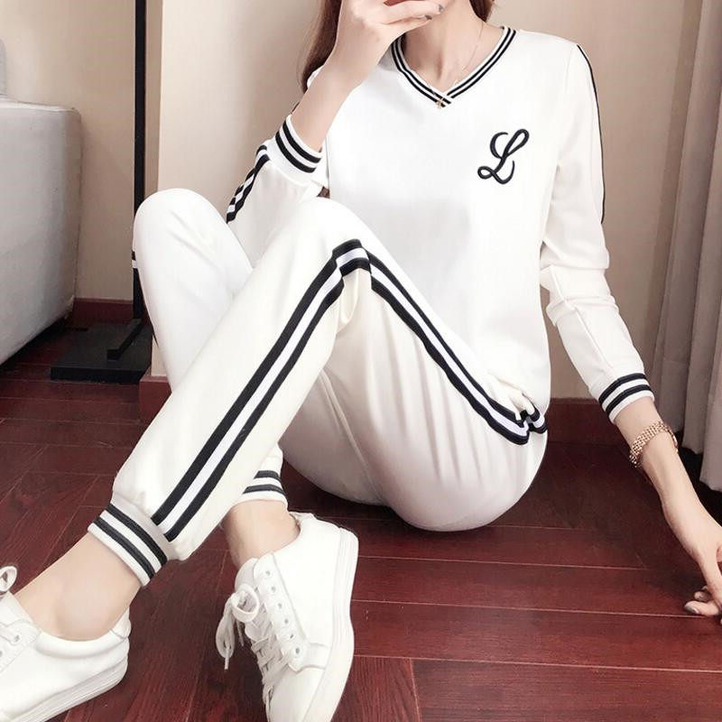 Hong Kong tide brand sports suit female spring and autumn new Korean version student loose fashion thick T-shirt trousers casual two-piece