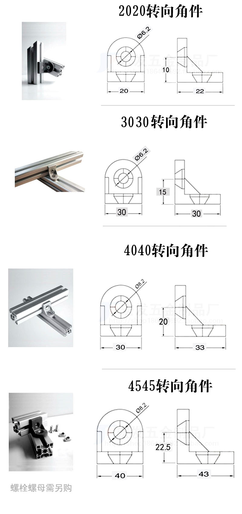 2020 Steering corner 3030 Steering corner 4040 Steering corner 4545 Steering corner