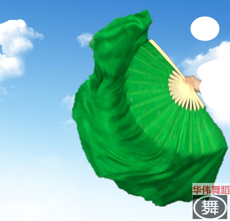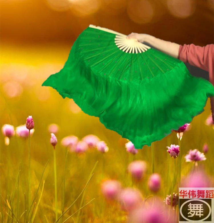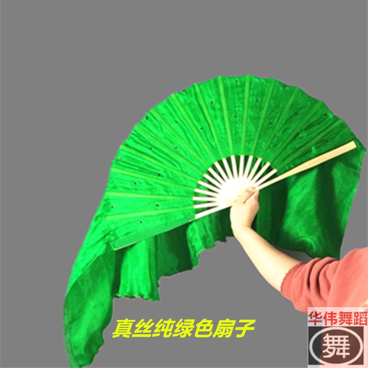 Solid color silk dance fan Water lotus A green leaf long fan plus lengthened double-sided Yangge fan