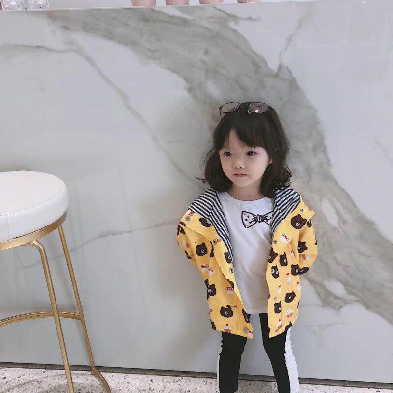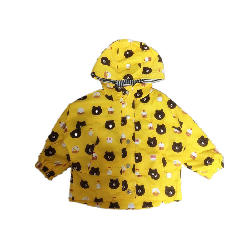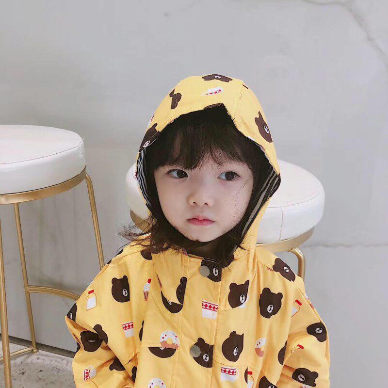 (Joe's) Autumn and Winter New Boys and Girls Cartoon Bear Double Layer Waterproof and Windproof Mid-length Jacket Children's Hooded Windbreaker