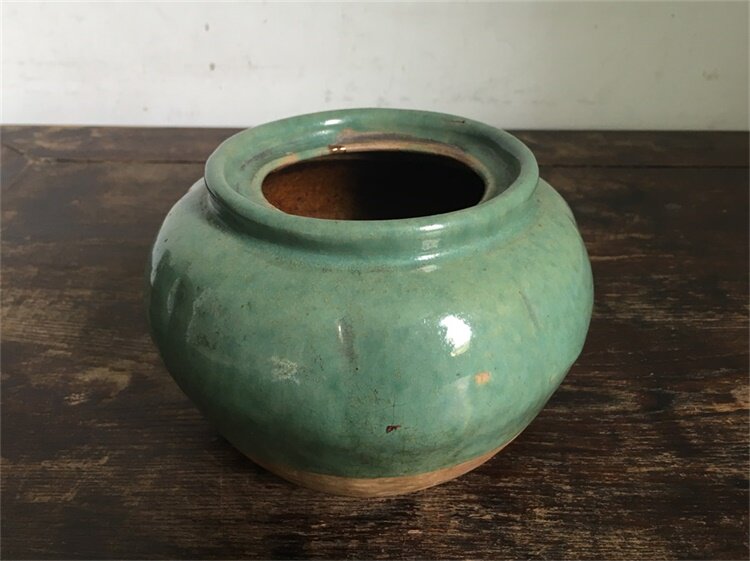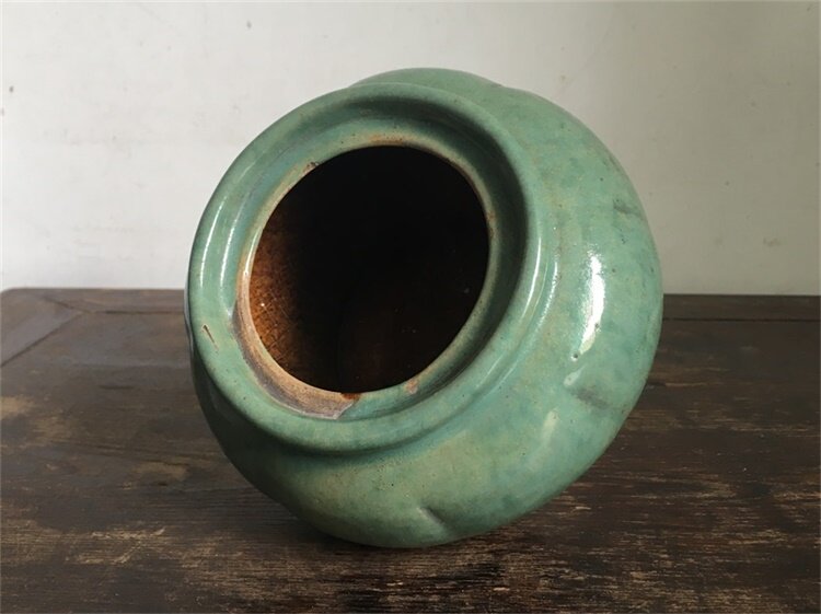 Republic of China Pottery Tire Melon Prismatic Apple Green Glazed Flat Jar Glazed Color Fattener shaped regular old objects porcelain ancient playing chore