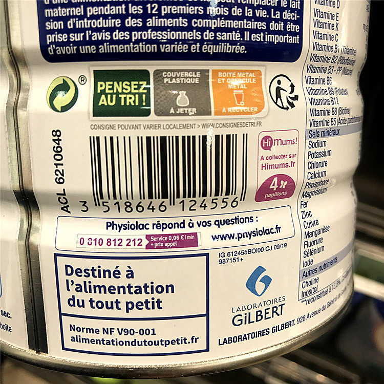 French direct mail 6 cans tax imported physiolac infant milk powder 3 segments 1-3 years old 800g