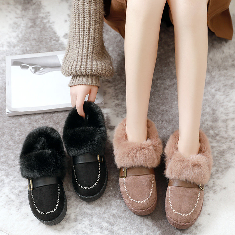 Bean shoes female winter plus wool shoes 2021 new fur shoes outer wear autumn shoes and one foot