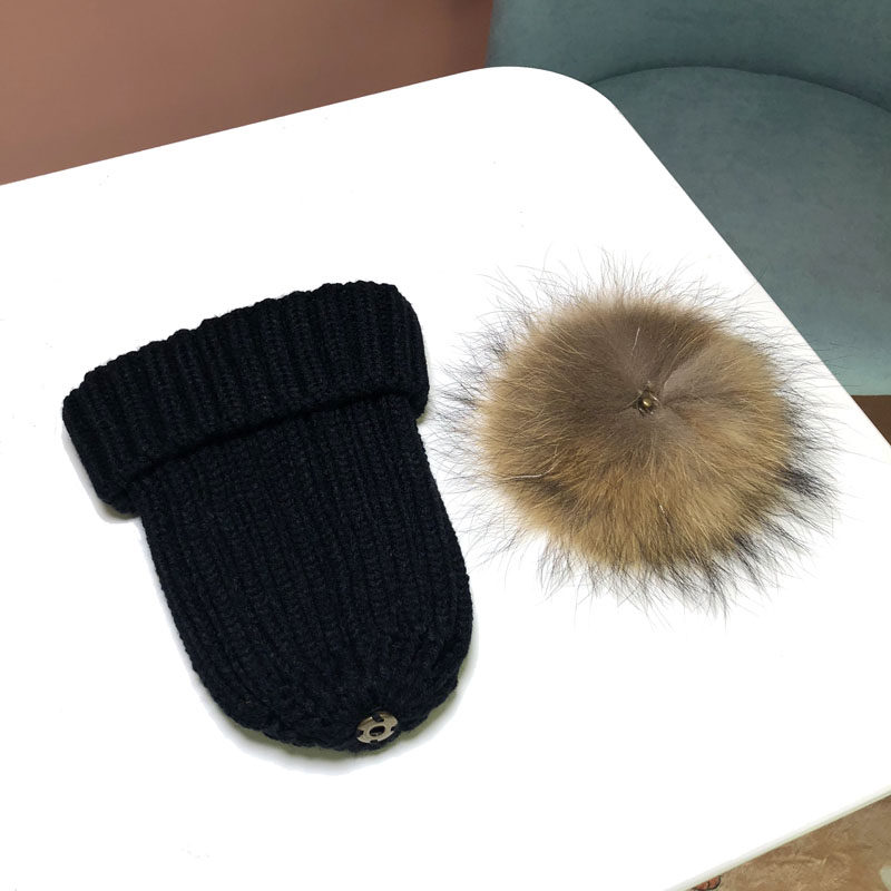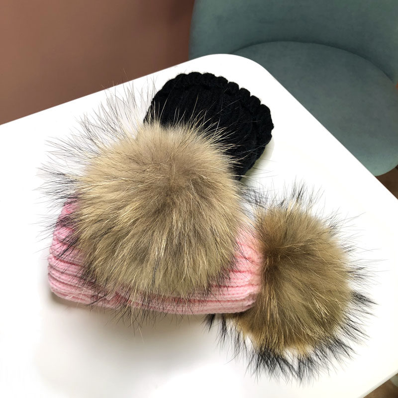 Baby hat autumn and winter male baby raccoon fur ball knitted hat boys and girls warm wool hat parent-child pullover hat
