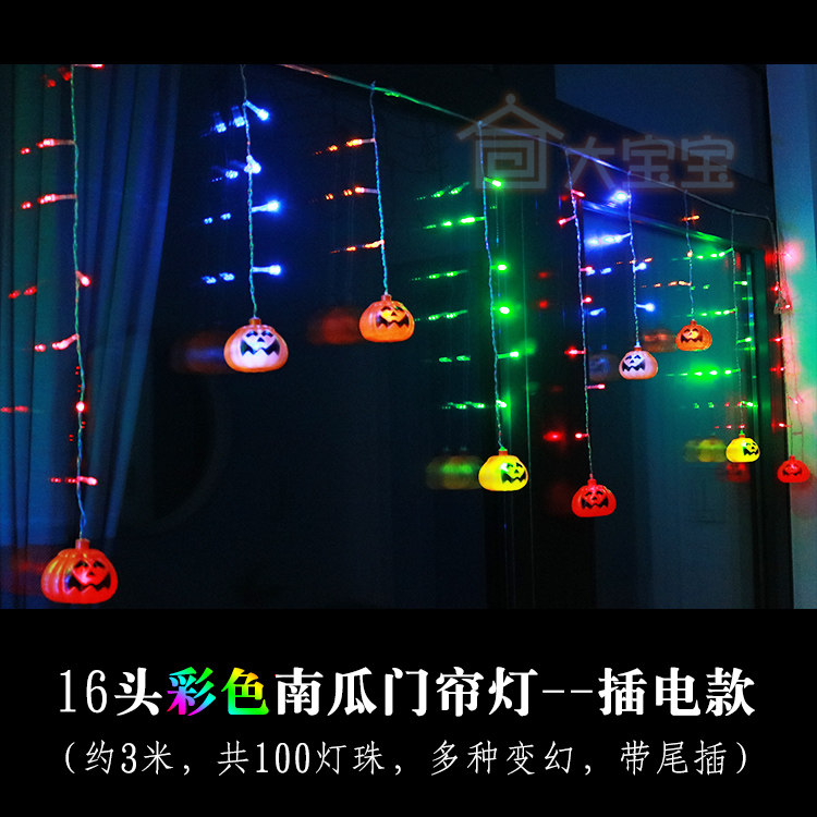 Halloween decoration Jack-o-lantern door curtain light Jack-o-lantern string led luminous lantern string bar decoration scene decoration