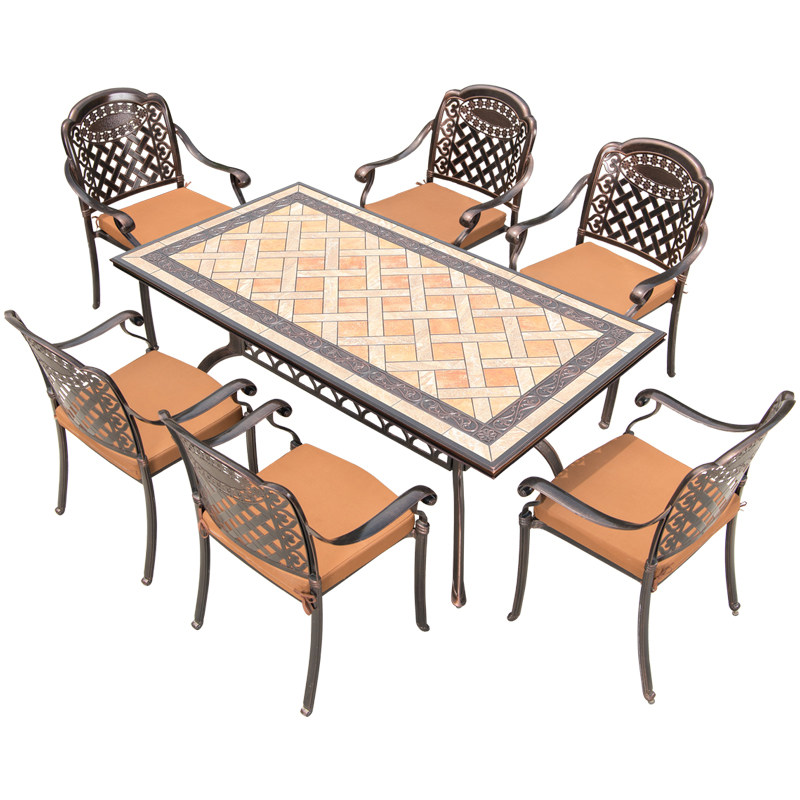Fuji Outdoor Table Garden Casting Aluminum Table & Chair CourtyOutdoor European style Villa Marble Surface Terrace