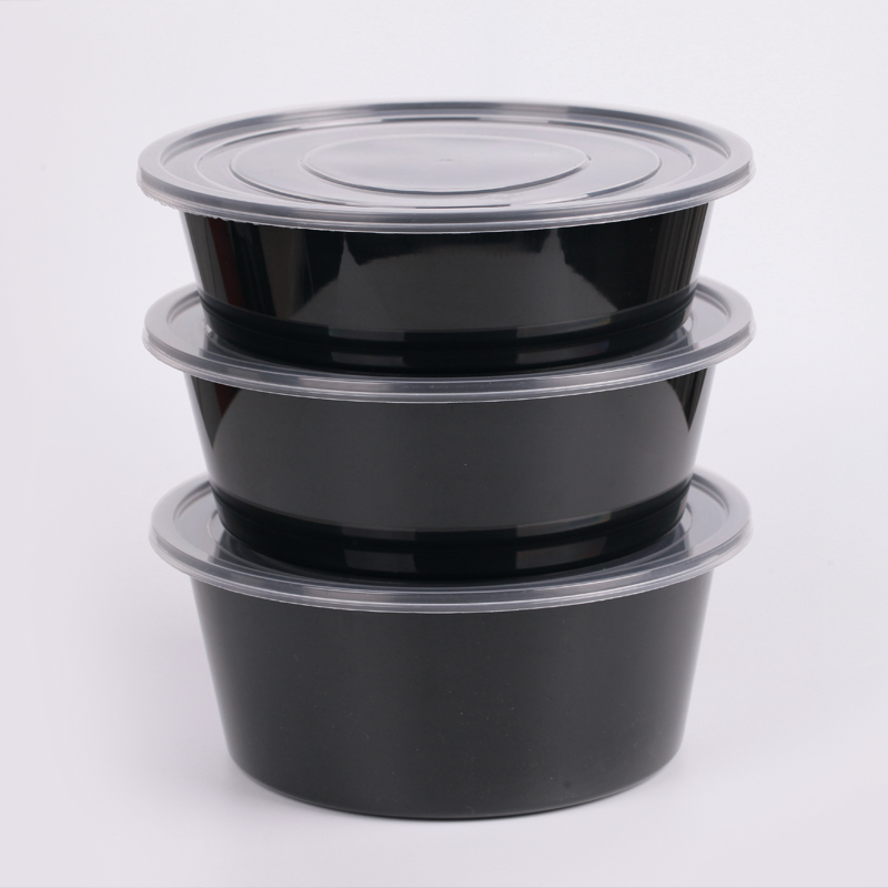Round 1000ml disposable lunch box Black delivery packing bowl High-grade thickened fast food box Soup bowl lunch box