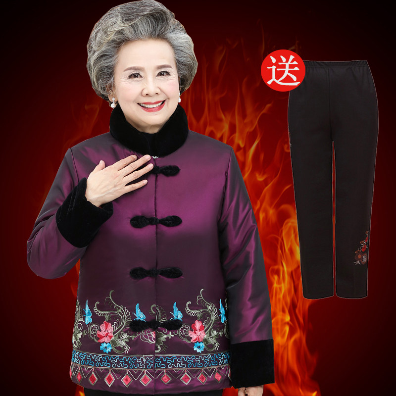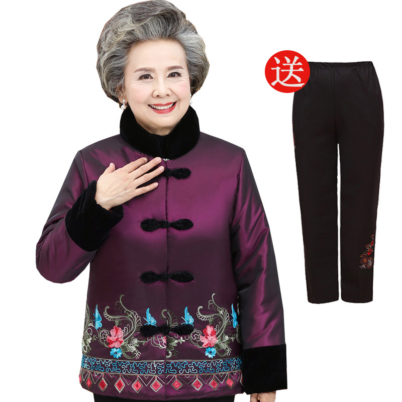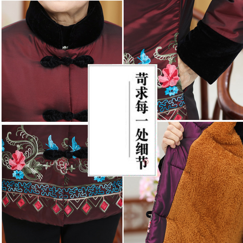Middle-aged and elderly winter clothes, women's grandma, winter embroidered cotton clothes, 60-80-year-old mothers, winter thick cotton-padded jacket