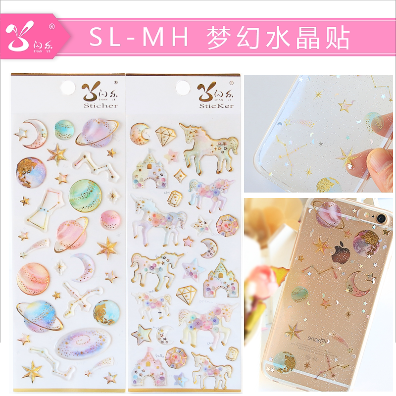 Beautiful girl heart Dream Castle Unicorn Crystal Glue Sticker Starry sky stereo mobile phone DIY decorative Sticker