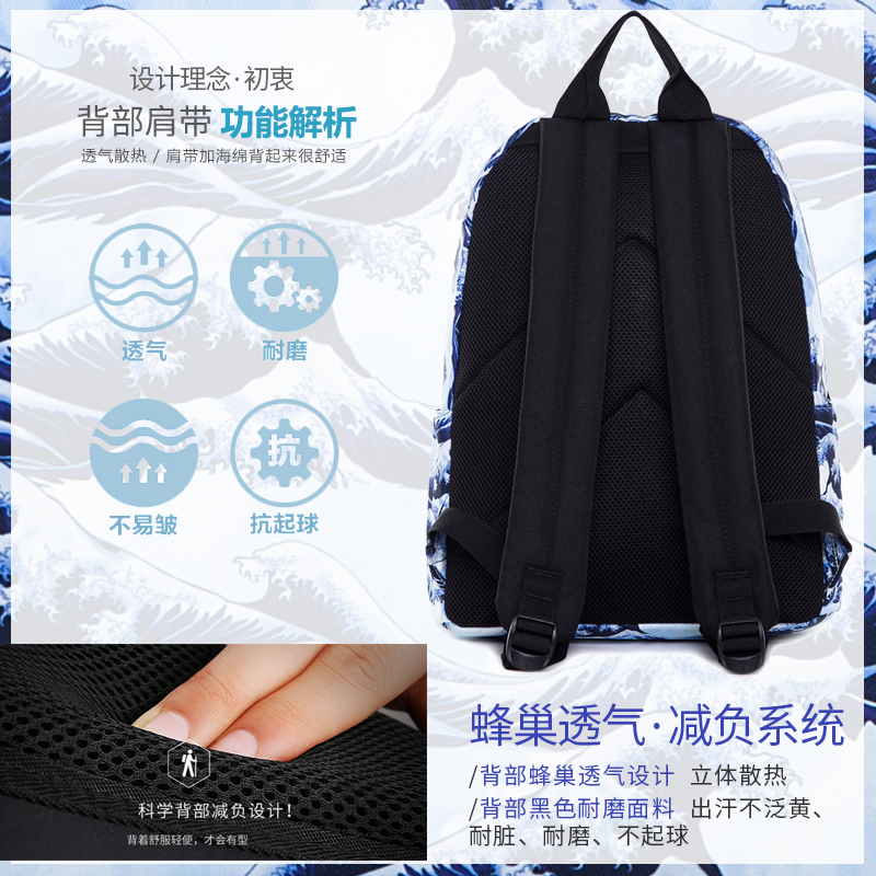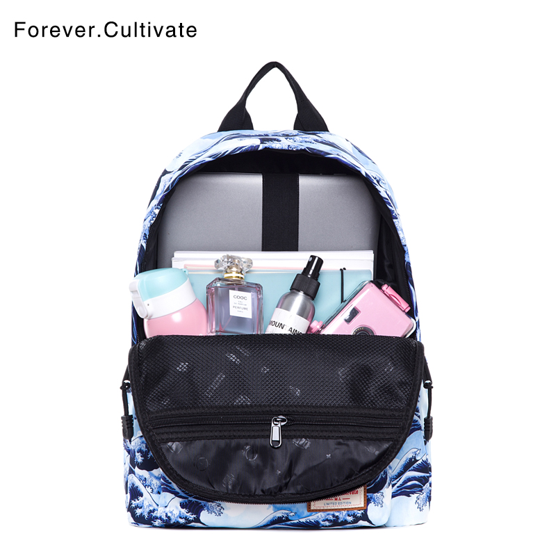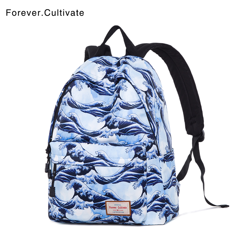 Forever cultivate Wave print backpack Women's large capacity leisure travel backpack Student school bag