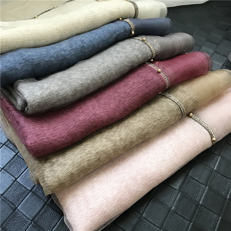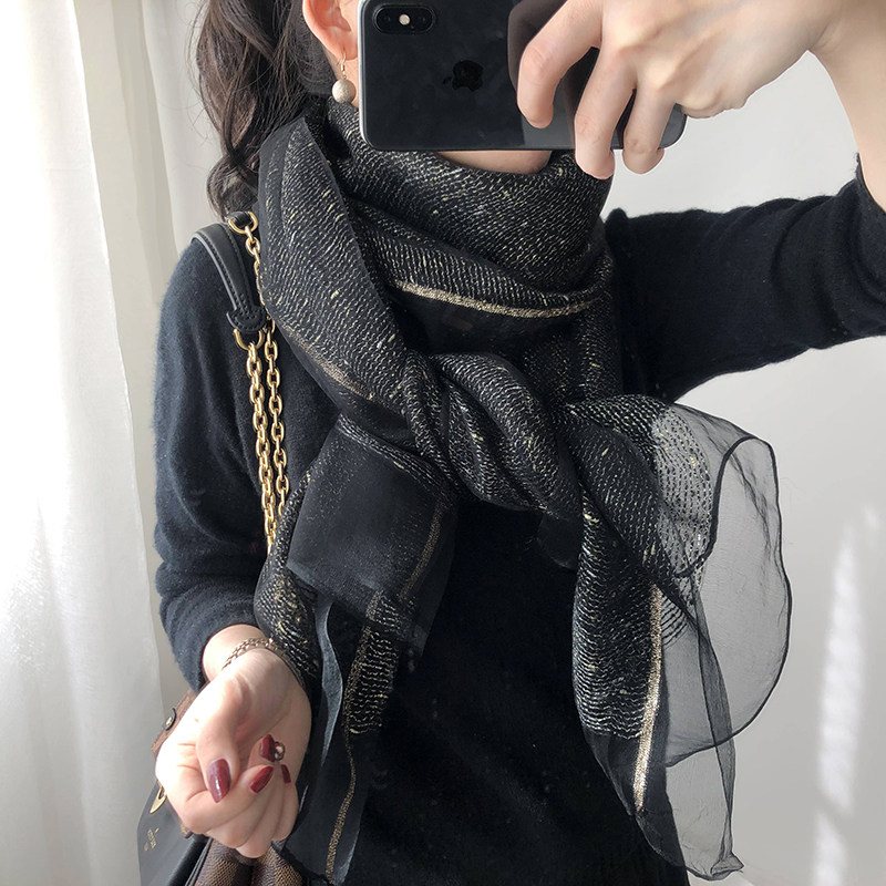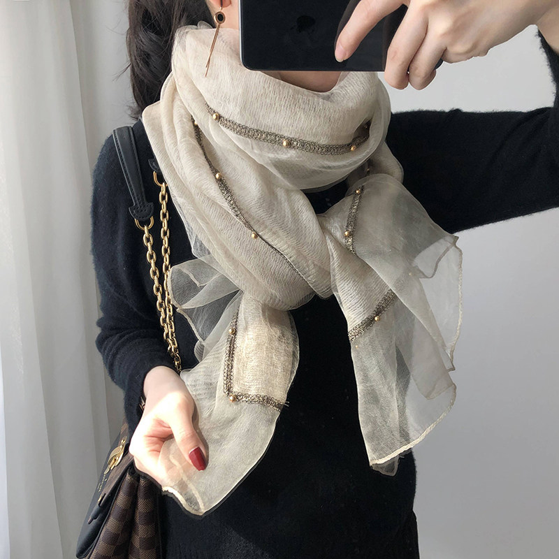 Scarf Women's spring and autumn Korean version of wild solid color silk wool mohair gauze shawl Mulberry silk long silk scarf spring