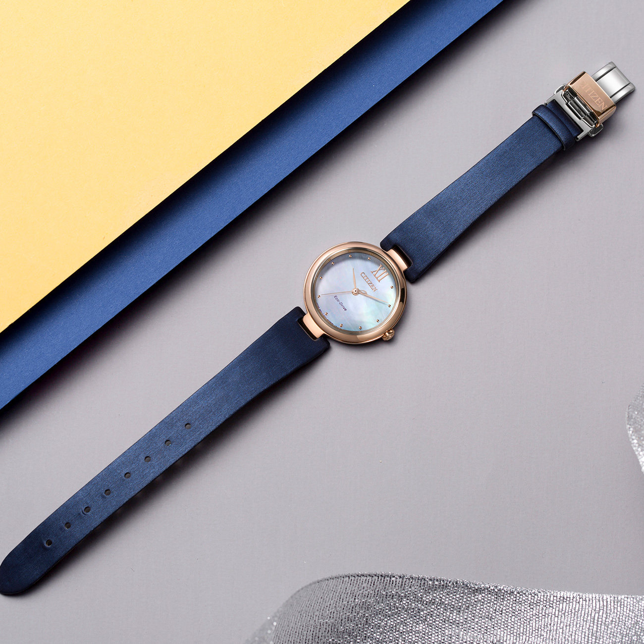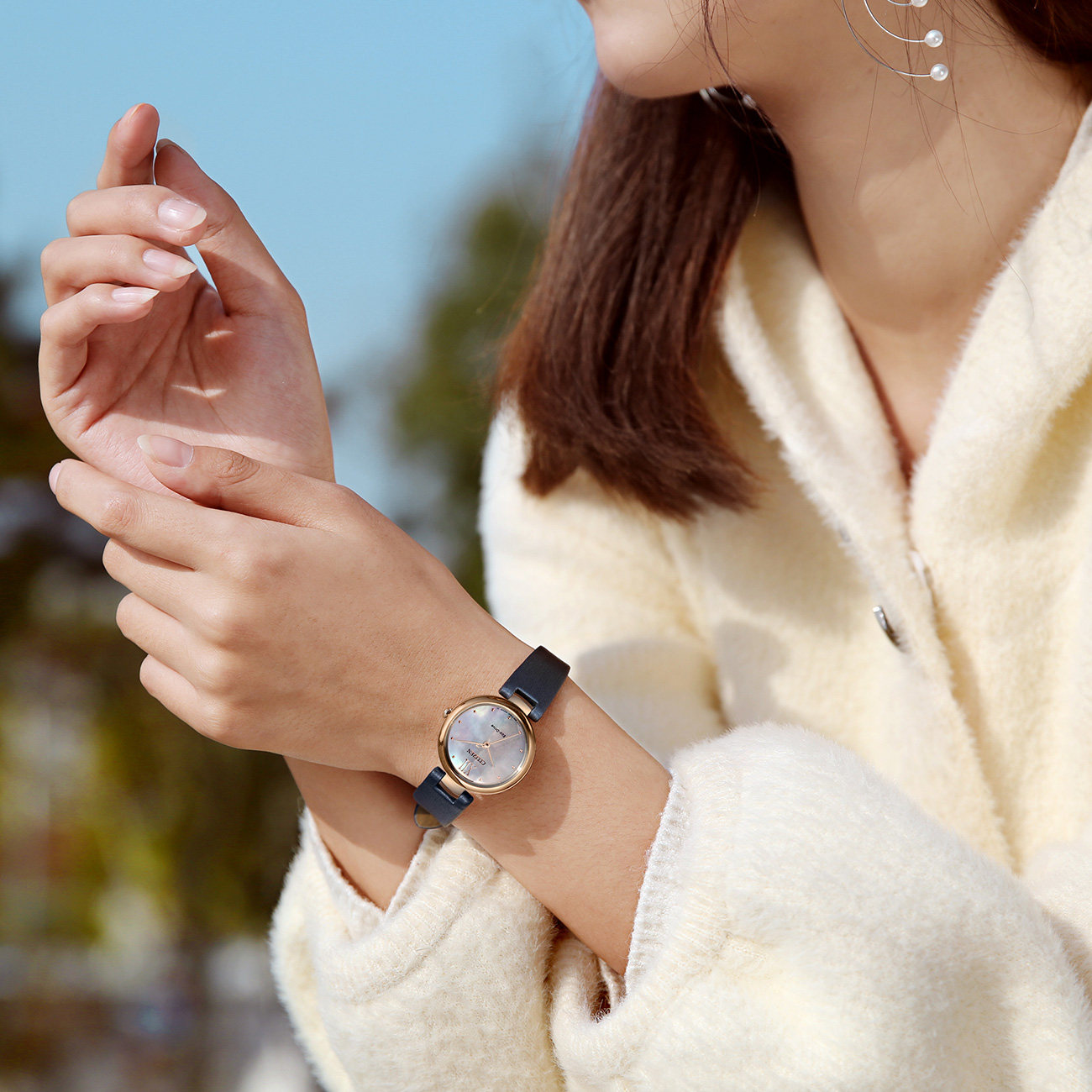 West iron city Japan official fashion simple motherling dial satin rust leather watchband light energy women's watch EM0533