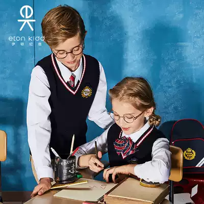 Eaton Gide school uniform spring and autumn children's suit vest for men and women, navy blue cotton knitted waistcoat 09B107